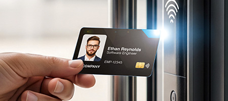 Zabezpečené RFID karty sú bezkontaktné karty. Vstupná karta obsahuje RFID čip. Čip obsahuje jedinečný identifikačný kód a uchováva všetky potrebné informácie. Podobne ako RFID štítky, aj RFID karty používajú na prenos údajov do RFID čítačky rádiové vlny. RFID karty sa vďaka svojej jedinečnej identifikácii používajú na kontrolu prístupu a zabezpečenie. RFID systém funguje tak, že vedľa dverí sa umiestni RFID čítačka, ktorá rozpozná jedinečné ID vysielané osobnou identifikačnou kartou. Dvere sa odomknú len v prípade zhody medzi RFID prístupovou kartou a oprávnením v systéme kontroly prístupu. Spoločnosť Brady vám poskytne všetky potrebné informácie o RFID kartách.